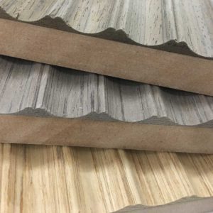 ①  Spessore finitura: 6 mm  Pannello MDF/ Pannello multistrato: 15 mm SUPPORTO RIGIDO ④  Bilanciante: 0,6 mm ⑤  Passo delle fresature: 19 mm ⑥  Spessore finito: 18,4 mm  Dimensioni pannello rigido: 3000×1200 mm